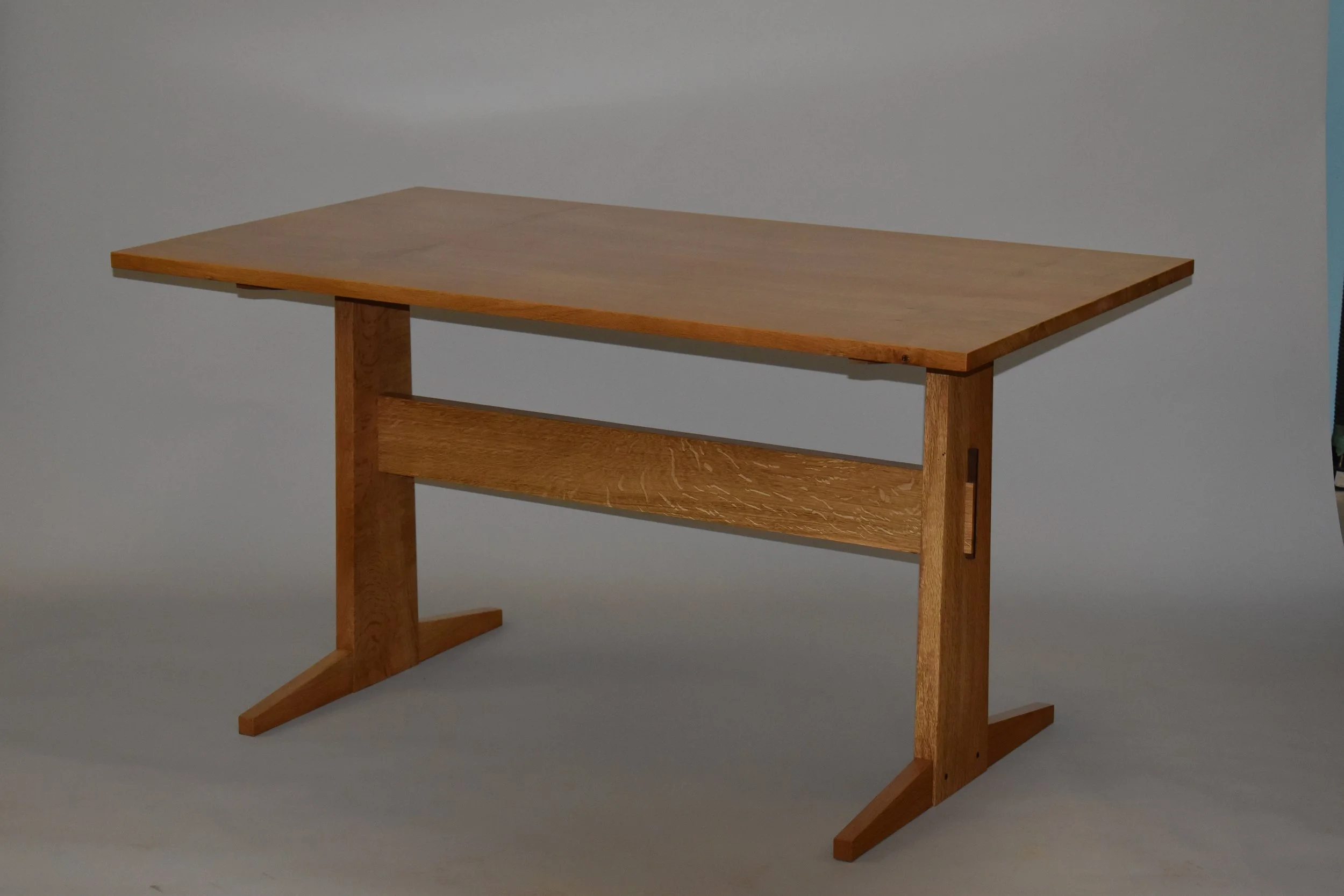 Fir Trestle Table With Walnut Pins. Breaks Down.